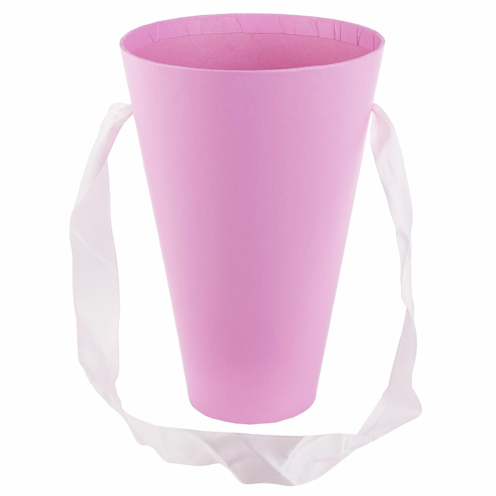 Коробка-кашпо "Конус", D13,5xH20 см, с ручкой Розовый