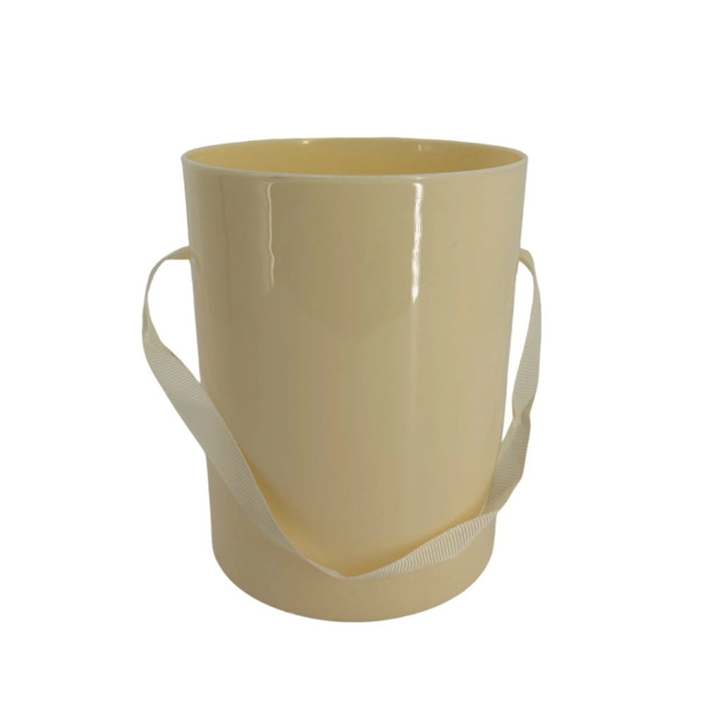 Коробка-кашпо (пластик), D11xH14 см, с ручкой Бежевый