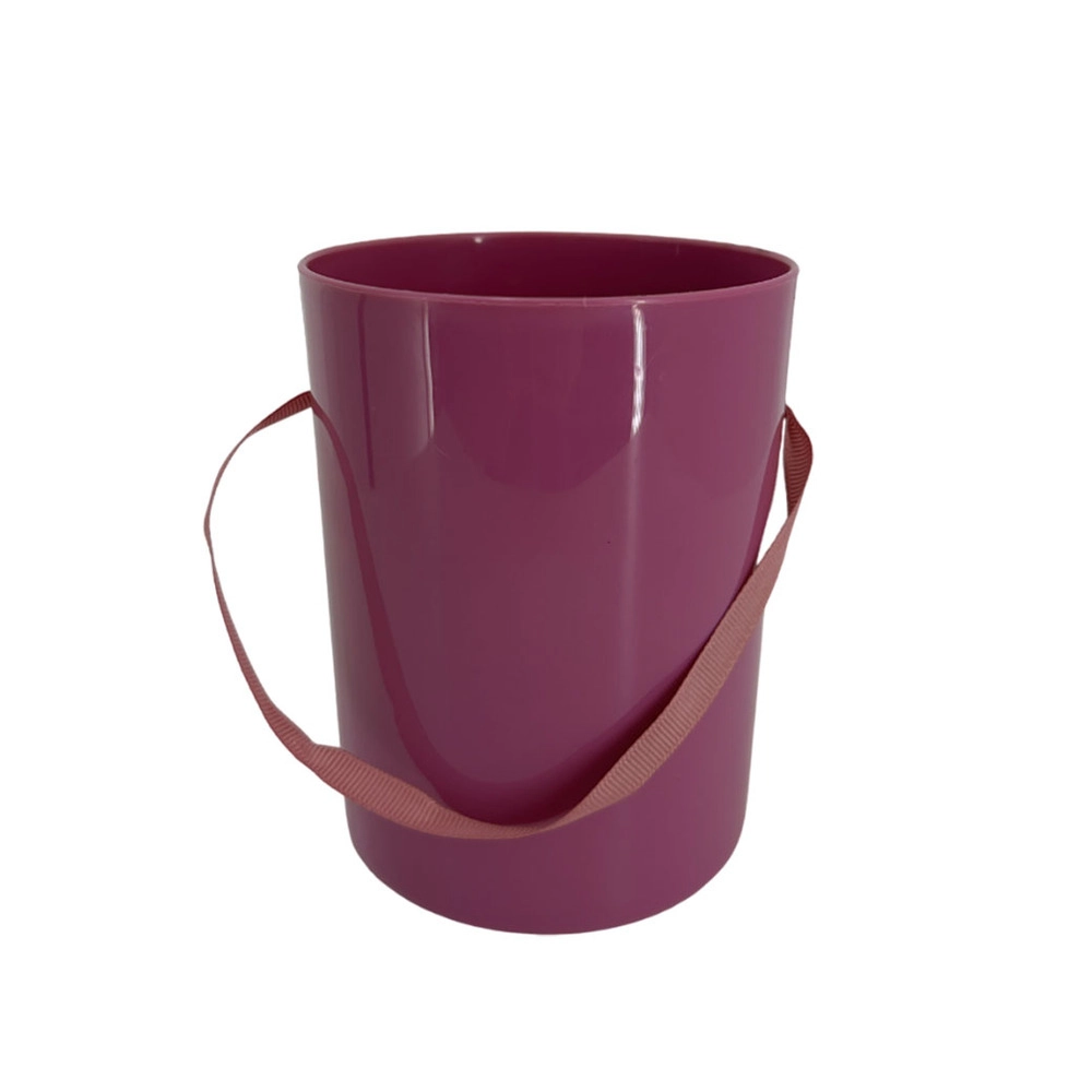 Коробка-кашпо (пластик), D11xH14 см, с ручкой Темно-розовый