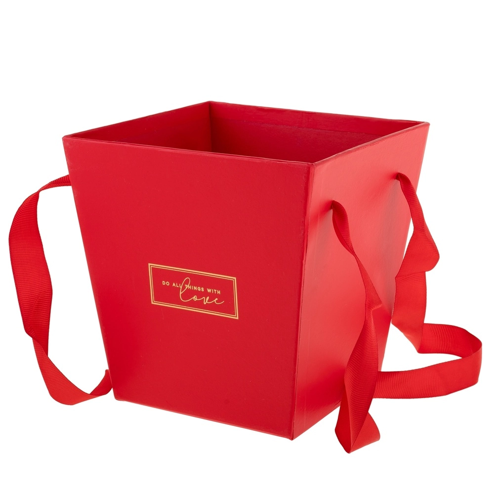 Коробка-кашпо "Трапеция/Принт", 14,5x11xH15 см, с ручкой Алый