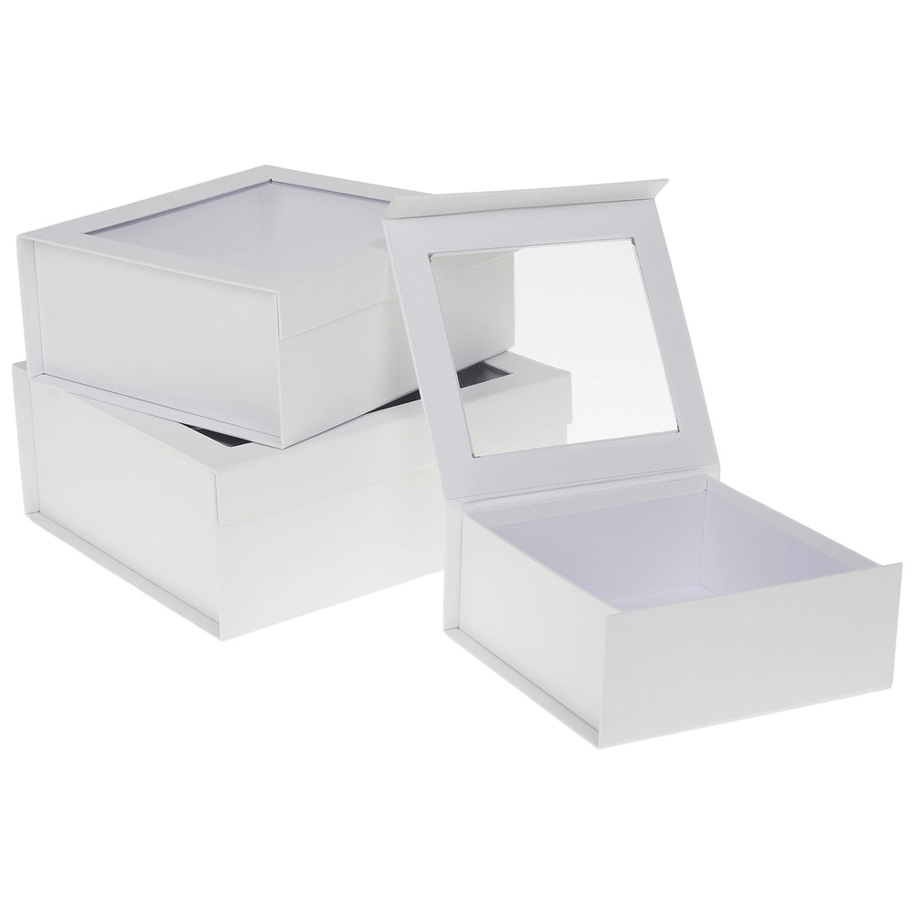Коробка подарочная, 26,5x25,5xH11 см - 19,5x18xH8 см, набор (3 шт), с окном Белый