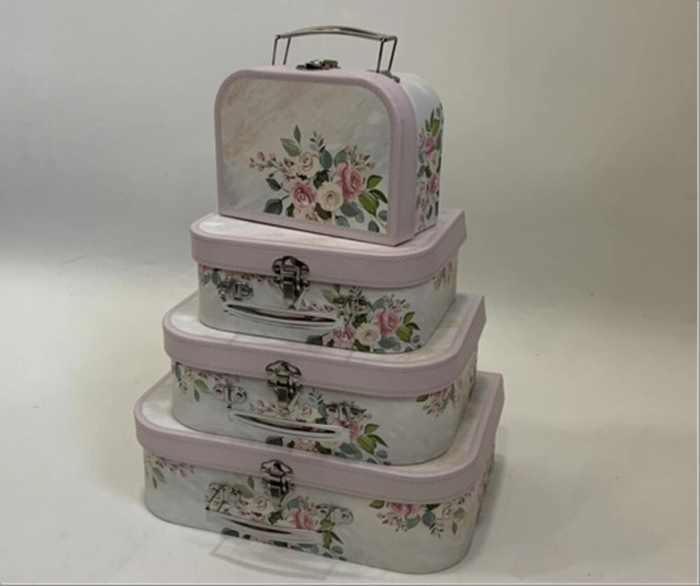 Коробка подарочная "Чемодан/Цветы", 30x20,5хH9 см, 17х12хH7,5 см, набор (4 шт) Розовый