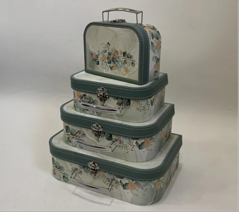 Коробка подарочная "Чемодан/Цветы", 30x20,5хH9 см, 17х12хH7,5 см, набор (4 шт) Зеленый