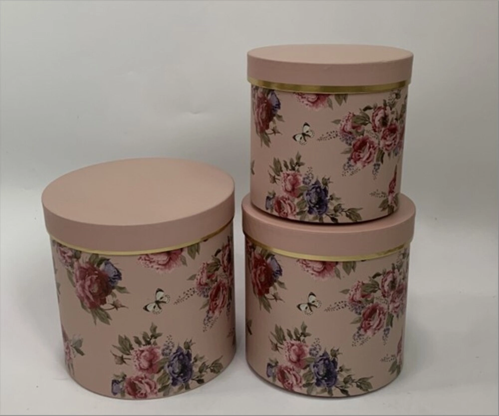 Коробка подарочная, D19,5xH19 см, D17,5xH17 см, D15,5xH15 см, набор (3 шт) Пудровый