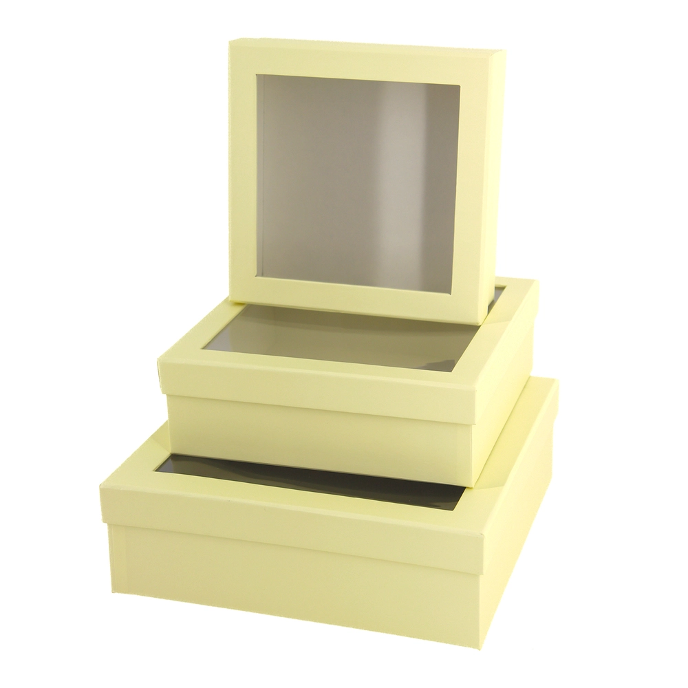 Коробка подарочная, D25хH8см, D21хH7 см, D18хH6 см, набор (3 шт), с окном Бежевый