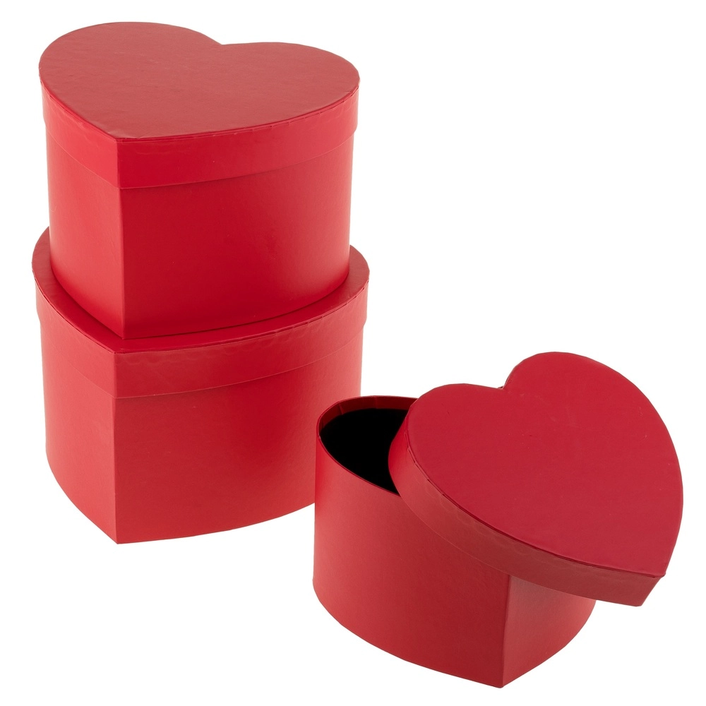 Коробка подарочная "Сердце", 22x20xH14 см - 18x16xH11 см, набор (3 шт) Красный