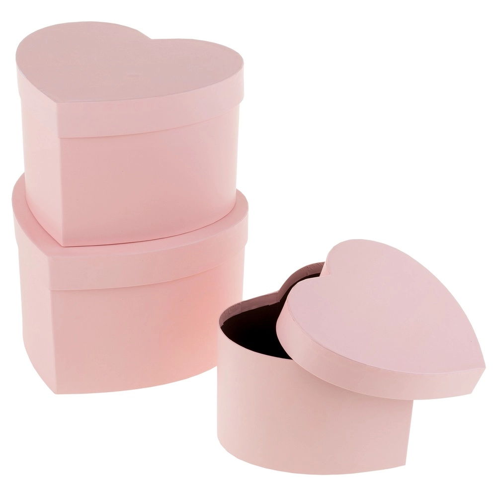 Коробка подарочная "Сердце", 22x20xH14 см - 18x16xH11 см, набор (3 шт) Розовый