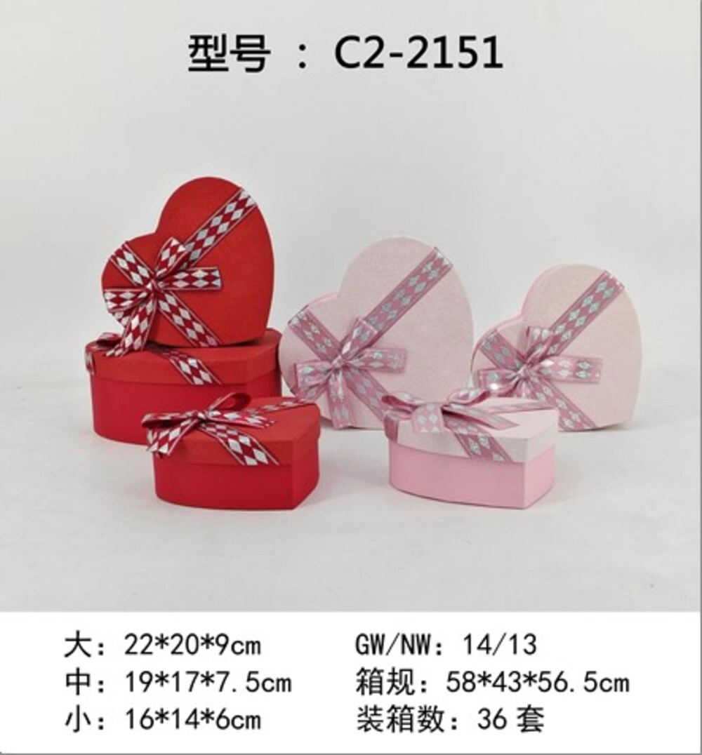 Коробка подарочная "Сердце", 22x20xH9 см, 19x17xH7,5 см, 16x14xH6 см, набор (3 шт), с бантом Розовый