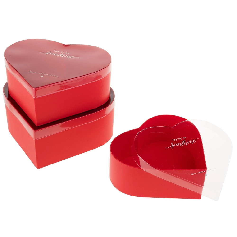 Коробка подарочная "Сердце", 28x25xH11 см - 23x21xH8,5 см, набор (3 шт) Красный