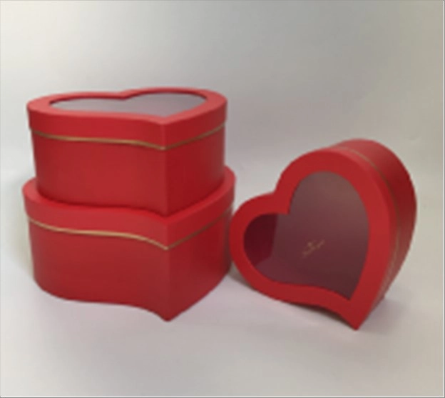 Коробка подарочная "Сердце", 31x27xH13 см - 24,5x21xH10 см, набор (3 шт), с окном Красный
