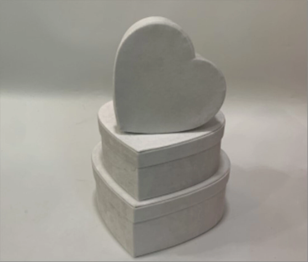 Коробка подарочная "Сердце" (бархат), 30x27,5xH12 см - 21x19,5xH8 см, набор (3 шт) Белый