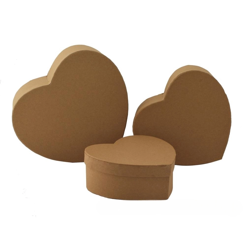 Коробка подарочная "Сердце" (крафт), 22x20xH9 см - 16x14xH6 см, набор (3 шт) Натуральный