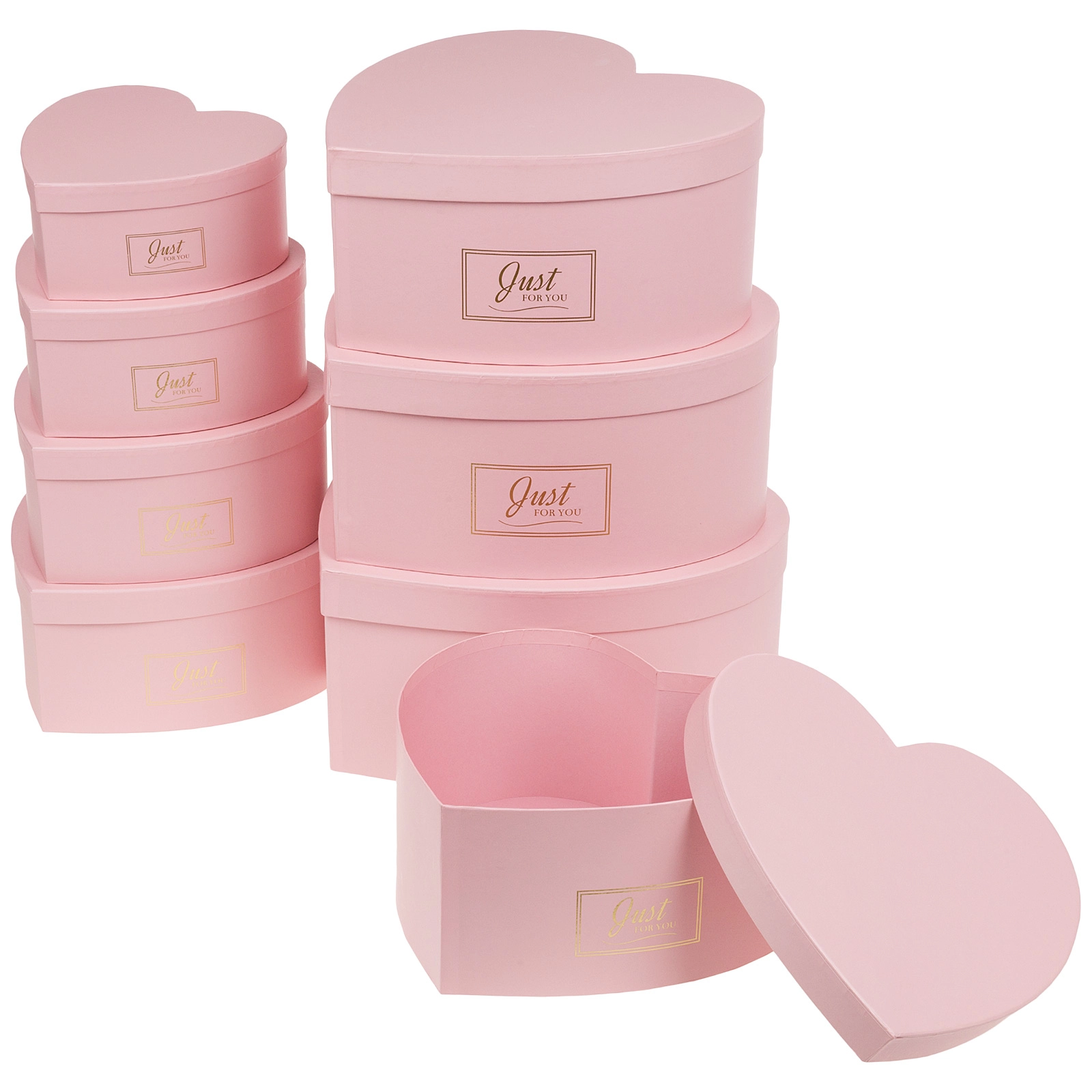 Коробка подарочная "Сердце/Принт", 32x31xH15 см - 18x7xH8 см, набор (8 шт) Розовый