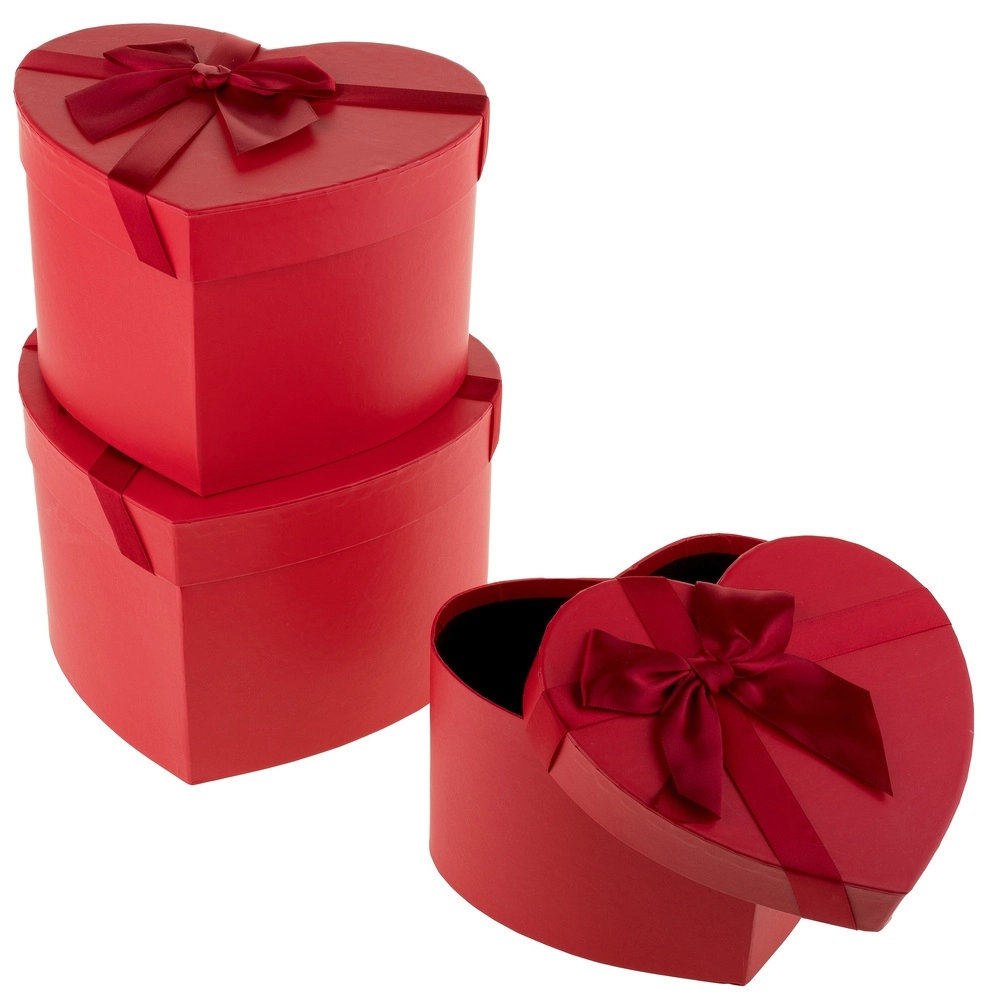 Коробка подарочная "Сердце с бантом", 22x20xH14 см - 18x16xH11 см, набор (3 шт) Красный