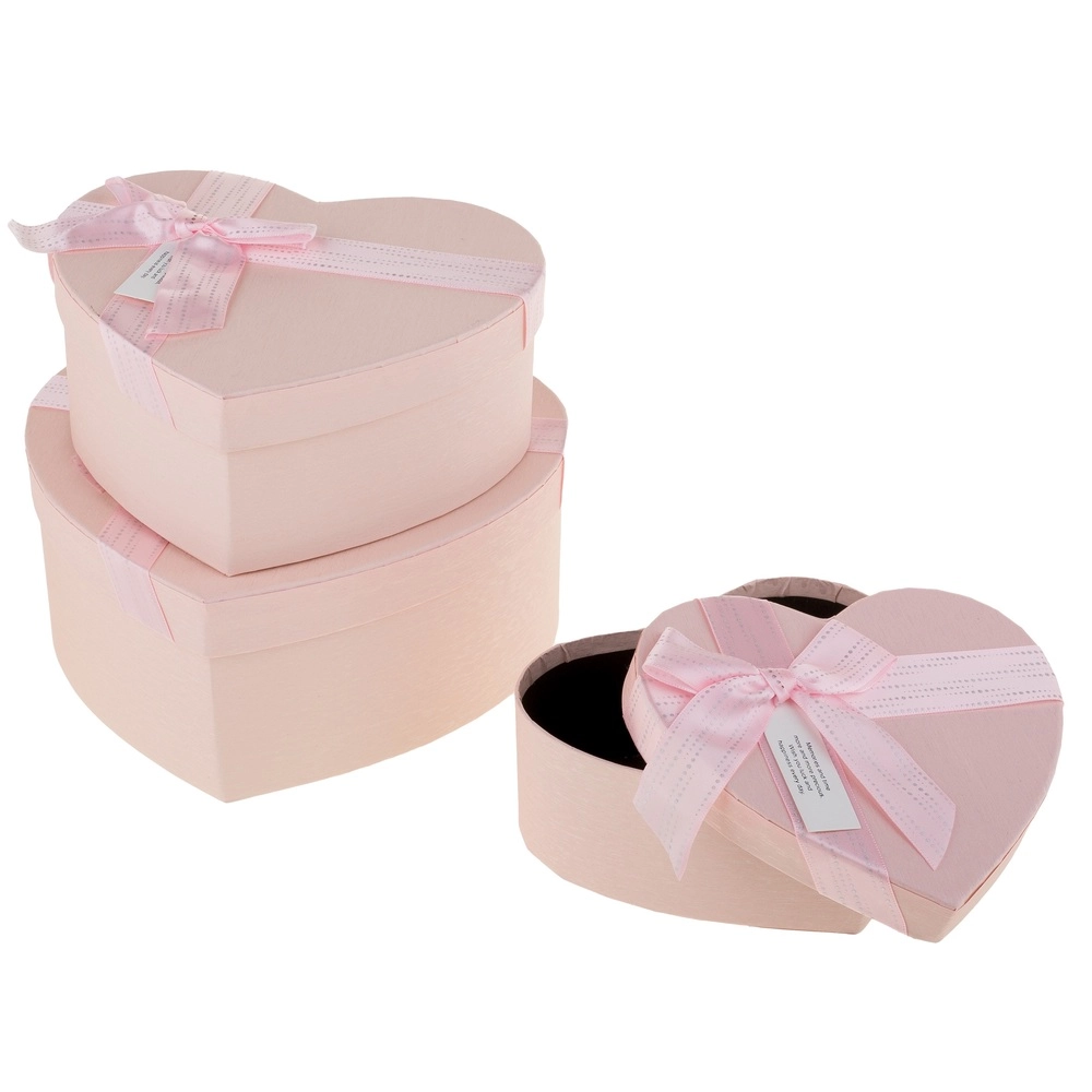 Коробка подарочная "Сердце с бантом", 22x20xH9 см - 16x14xH6 см, набор (3 шт) Розовый