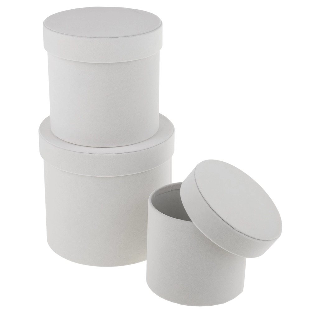 Коробка шляпная (бархат), D18xH17 см - D13xH12 см, набор (3 шт) Белый
