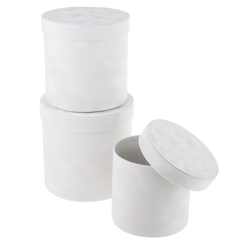 Коробка шляпная (бархат), D19,5xH19 см - D15,5xH15 см, набор (3 шт) Белый