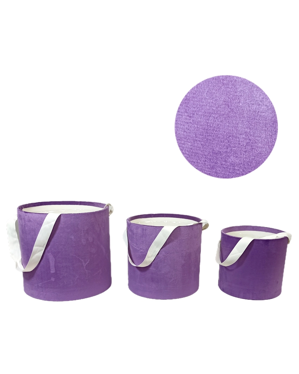 Коробка шляпная (бархат), D22xH23,5 см - D16xH17,5 см, набор (3 шт), с вставкой, без крышки Сиреневый