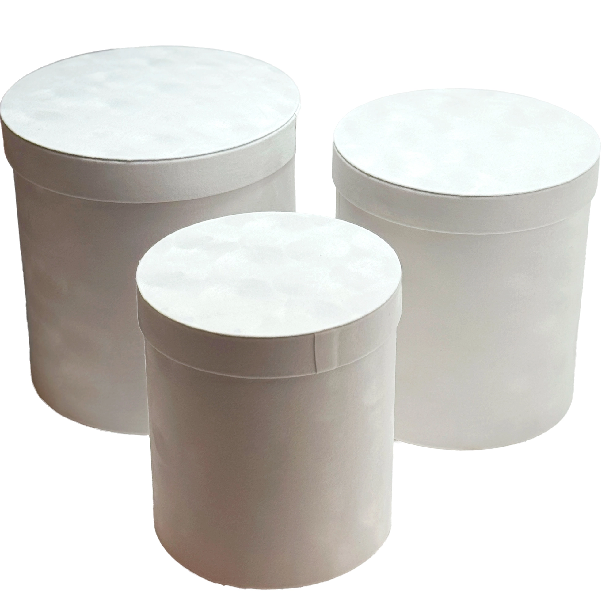 Коробка шляпная (бархат), D24xH24,5 см - D18xH20,5 см, набор (3 шт) Белый