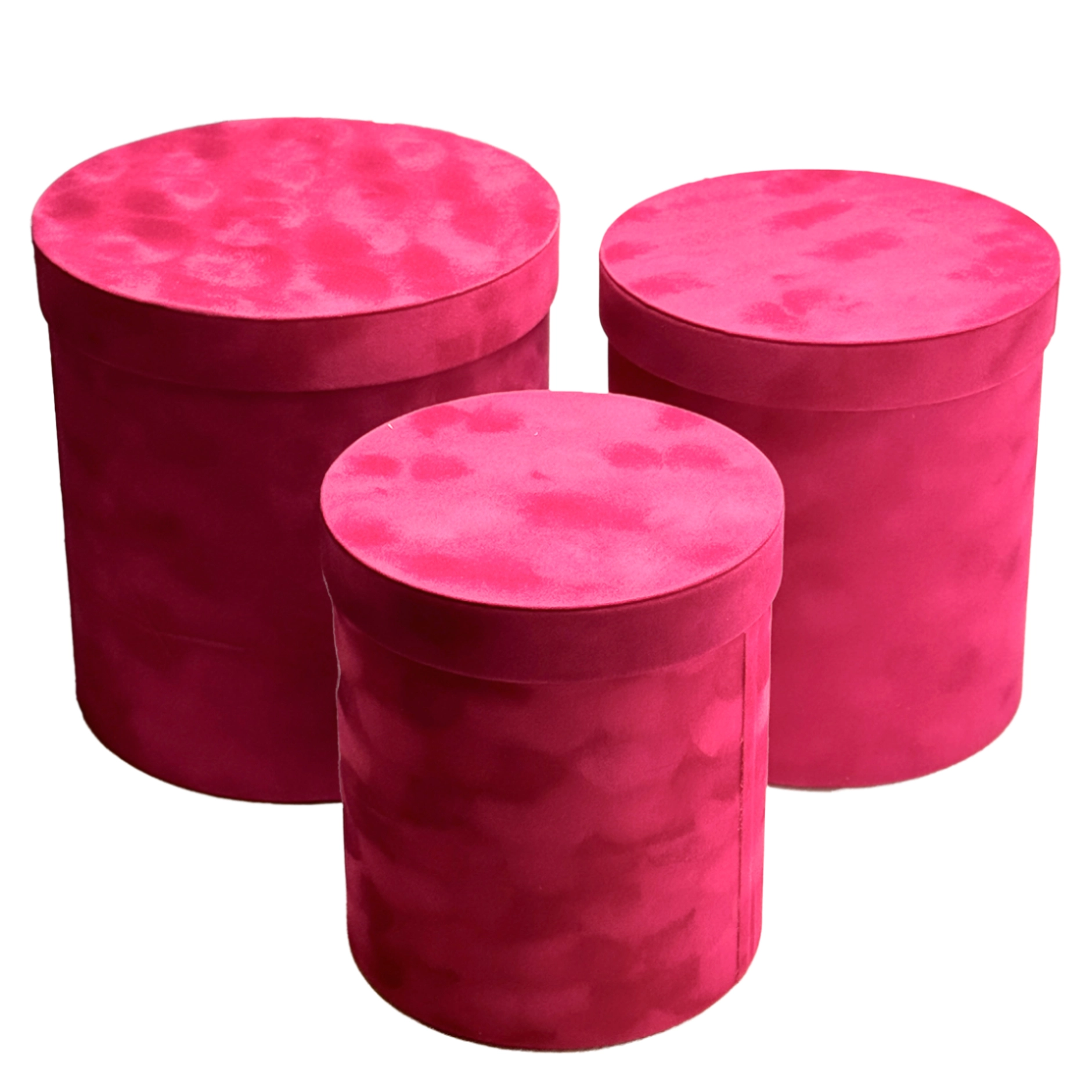 Коробка шляпная (бархат), D24xH24,5 см - D18xH20,5 см, набор (3 шт) Розовый