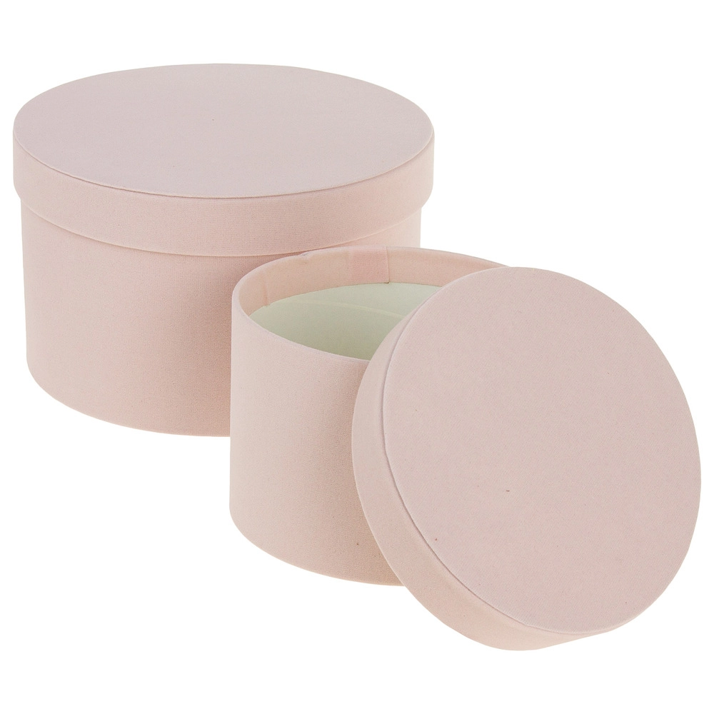 Коробка шляпная (барxат), D20xH12 см, D15xH10 см, набор (2 шт) Пудровый