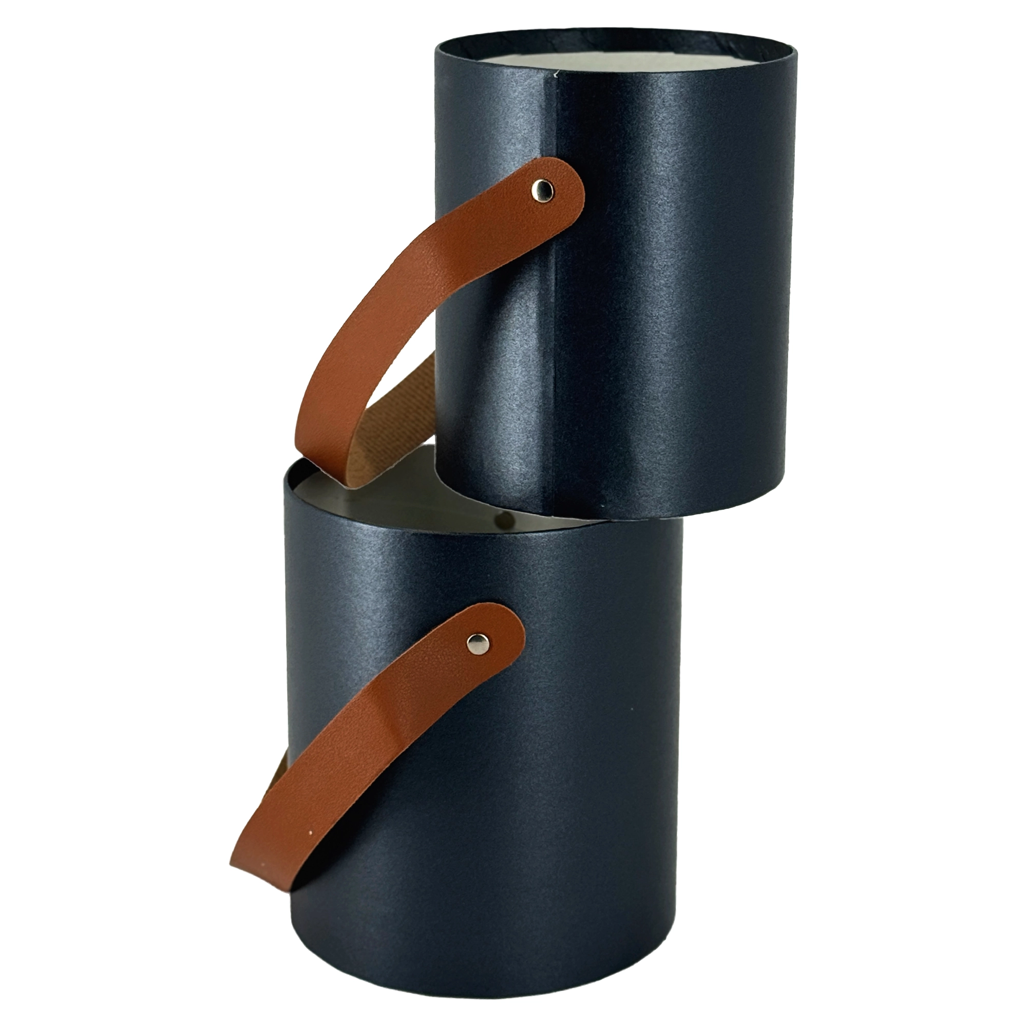 Коробка шляпная, D14хH17,5 см, D12хH15,5 см, набор (2 шт), без крышки, с ручкой Черный