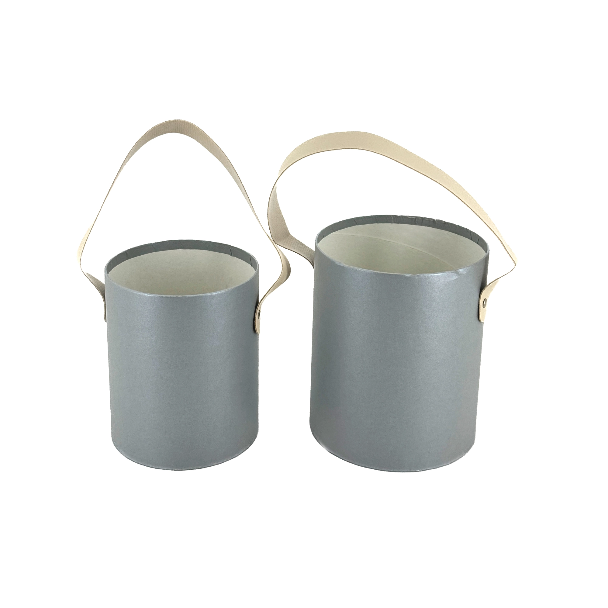 Коробка шляпная, D14хH17,5 см, D12хH15,5 см, набор (2 шт), без крышки, с ручкой Серебряный