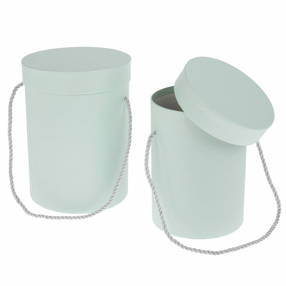Коробка шляпная, D15xH20 см, D13xH18 см, набор (2 шт), с ручкой Мятный