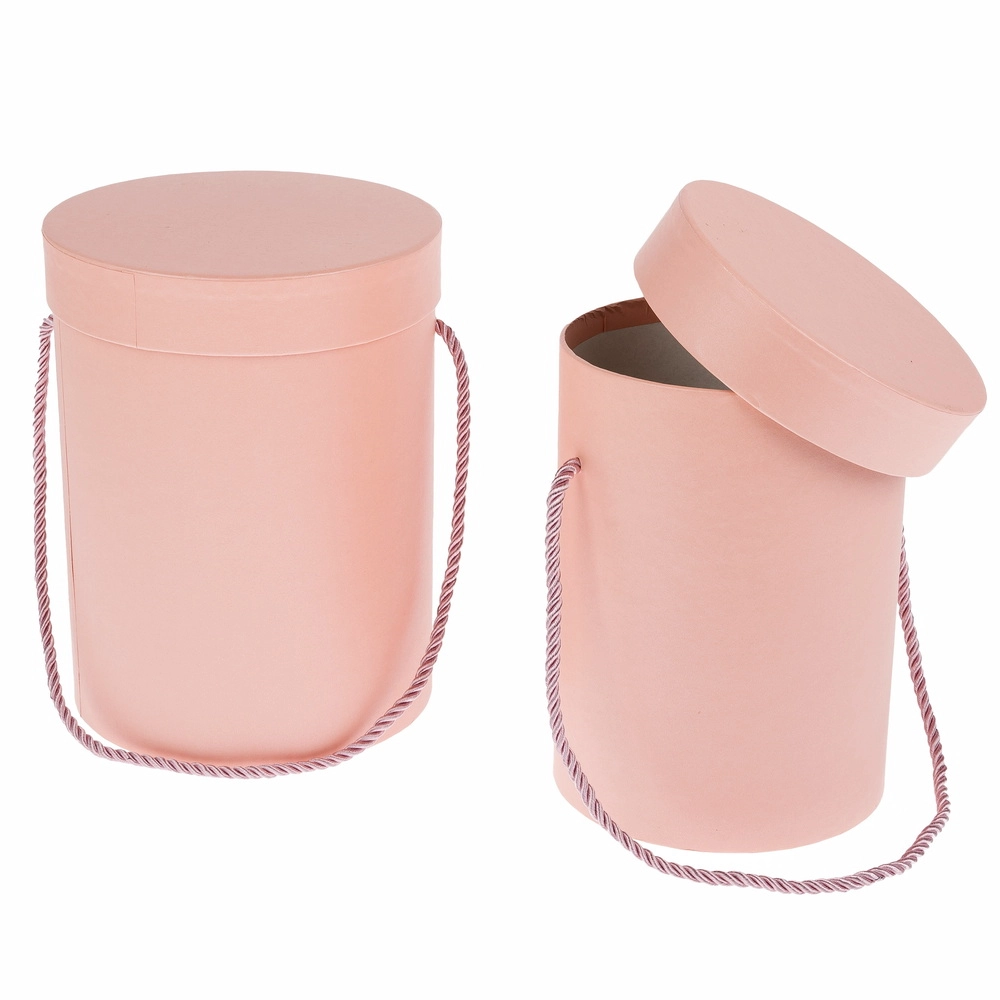 Коробка шляпная, D15xH20 см, D13xH18 см, набор (2 шт), с ручкой Светло-розовый
