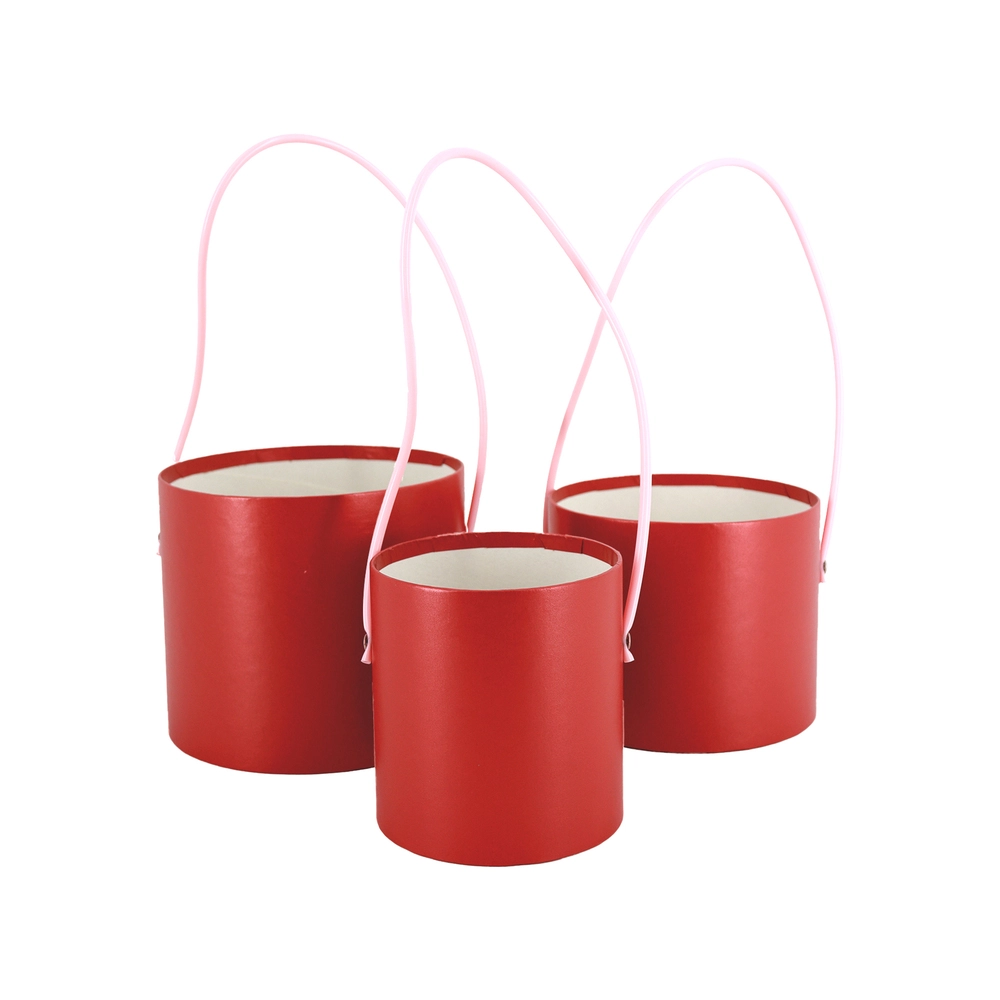 Коробка шляпная, D16xH14 см - D12xH12 см, набор (3 шт), без крышки Красный