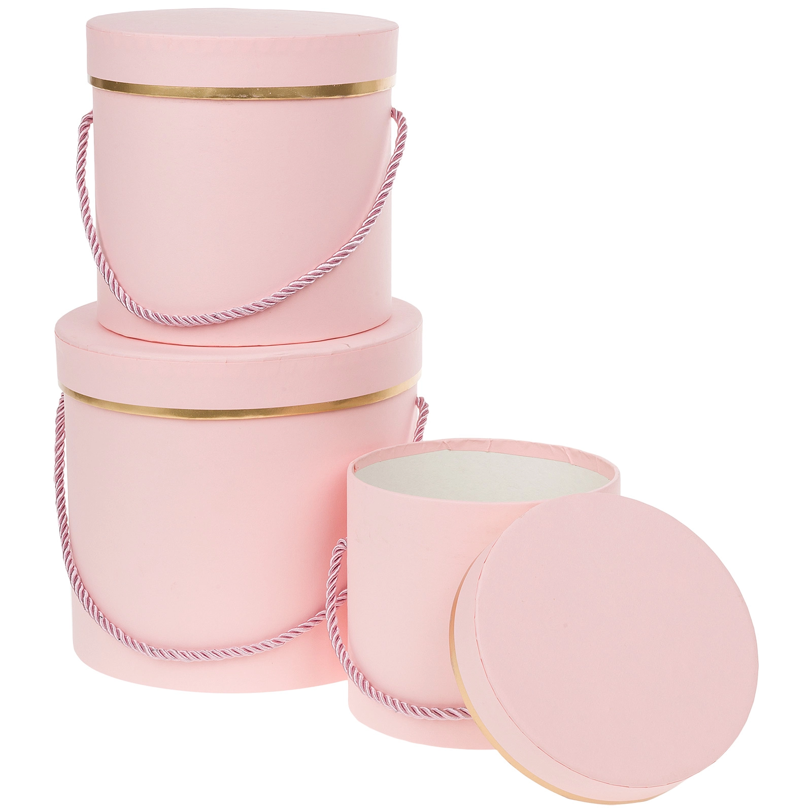 Коробка шляпная, D18,5xH17 см - D12xH12 см, набор (3 шт), с ручкой Розовый