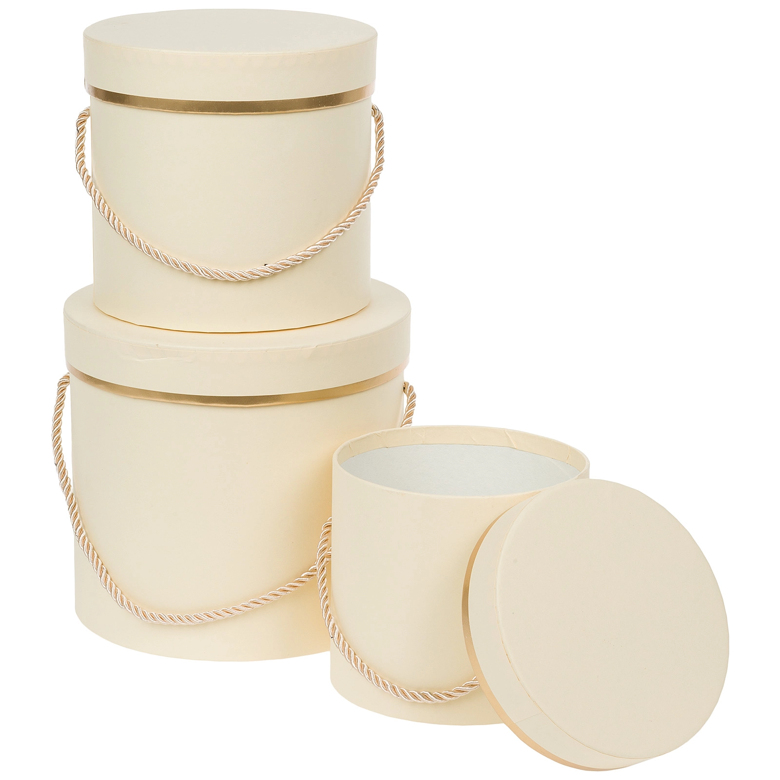 Коробка шляпная, D18,5xH17 см - D12xH12 см, набор (3 шт), с ручкой Светло-желтый