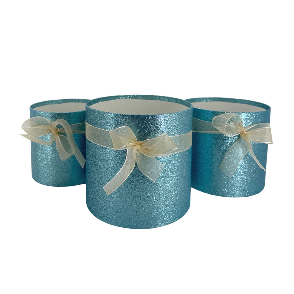 Коробка шляпная, D18хH17 см, D15хH14,5 см, D13хH12 см, набор (3 шт), без крышки Голубой