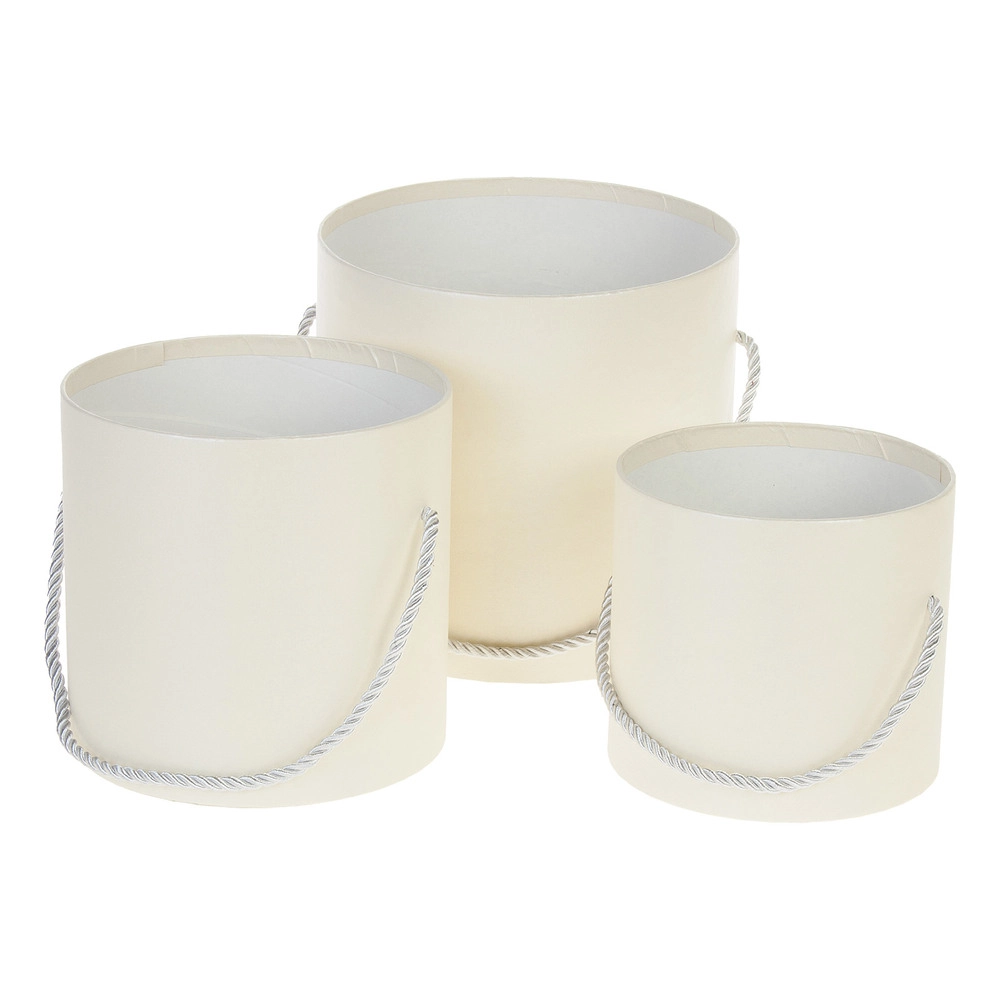 Коробка шляпная, D19,5xH19 см - D15,5xH15 см, набор (3 шт), без крышки, с ручкой Белый