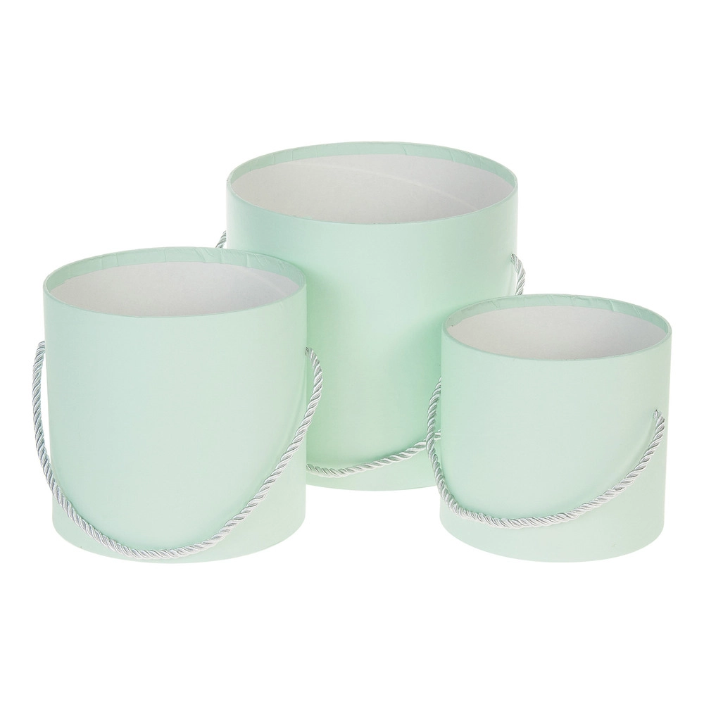 Коробка шляпная, D18xH17 см - D12,5xH12 см, набор (3 шт), без крышки, с ручкой Мятный