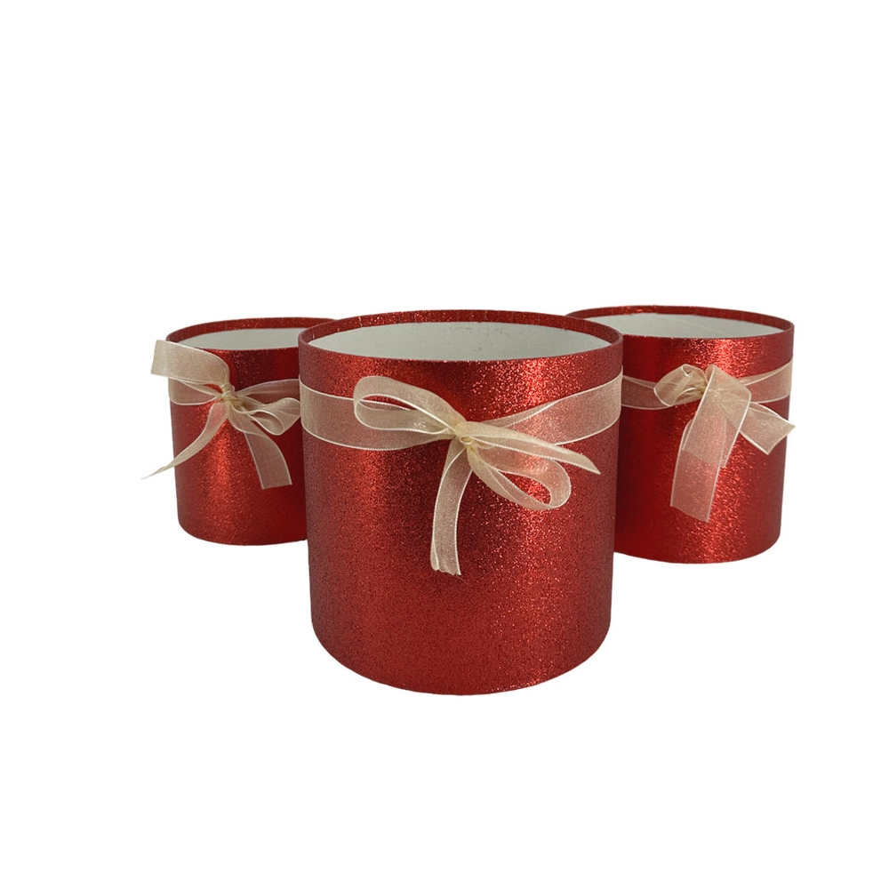 Коробка шляпная, D18xH17 см - D13xH12 см, набор (3 шт), без крышки Красный