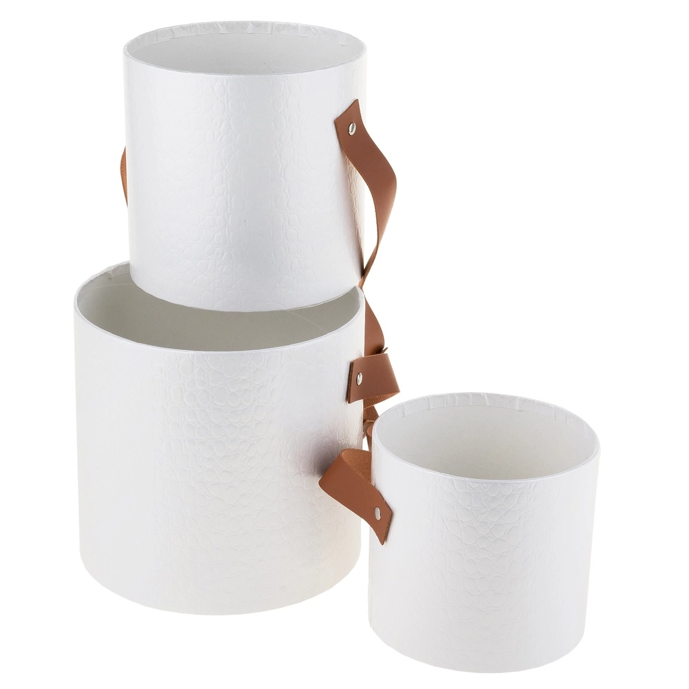 Коробка шляпная, D18xH17 см - D13xH12 см, набор (3 шт), без крышки, с ручкой Белый
