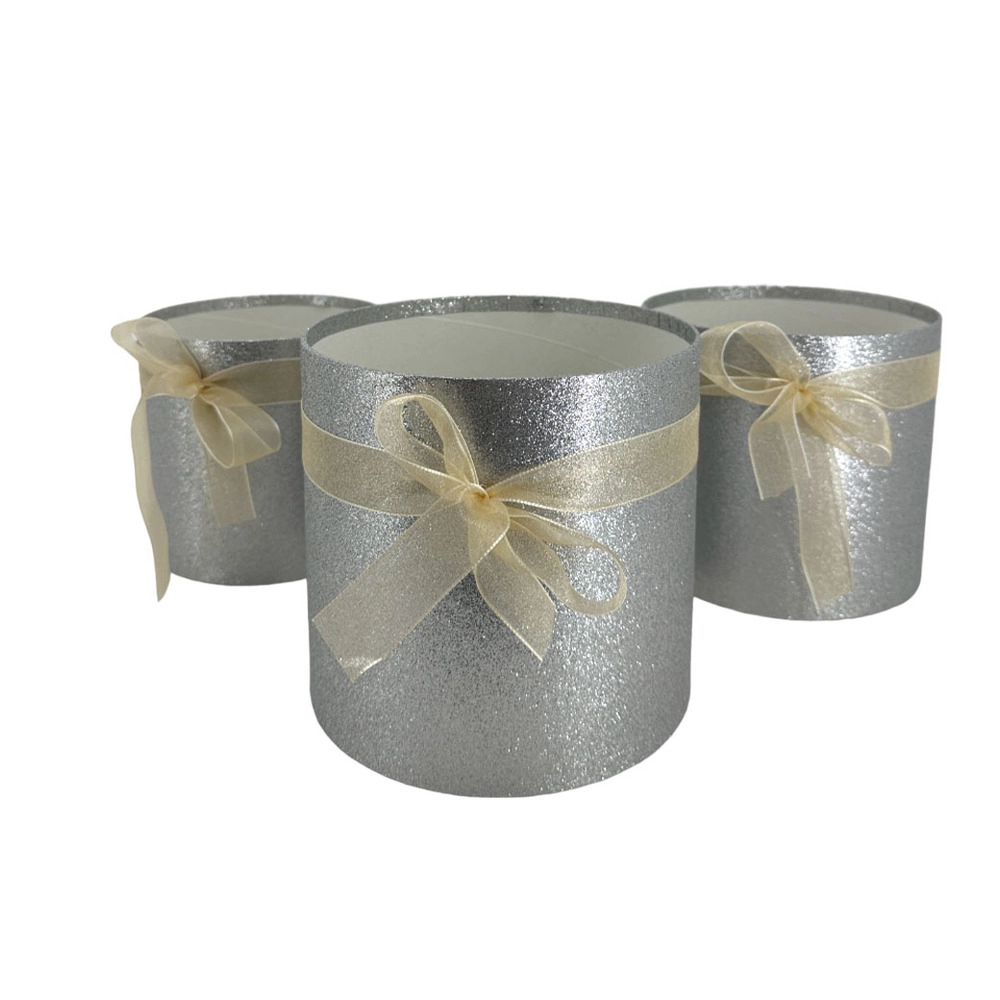 Коробка шляпная, D18xH17 см - D13xH12 см, набор (3 шт), без крышки Серебряный