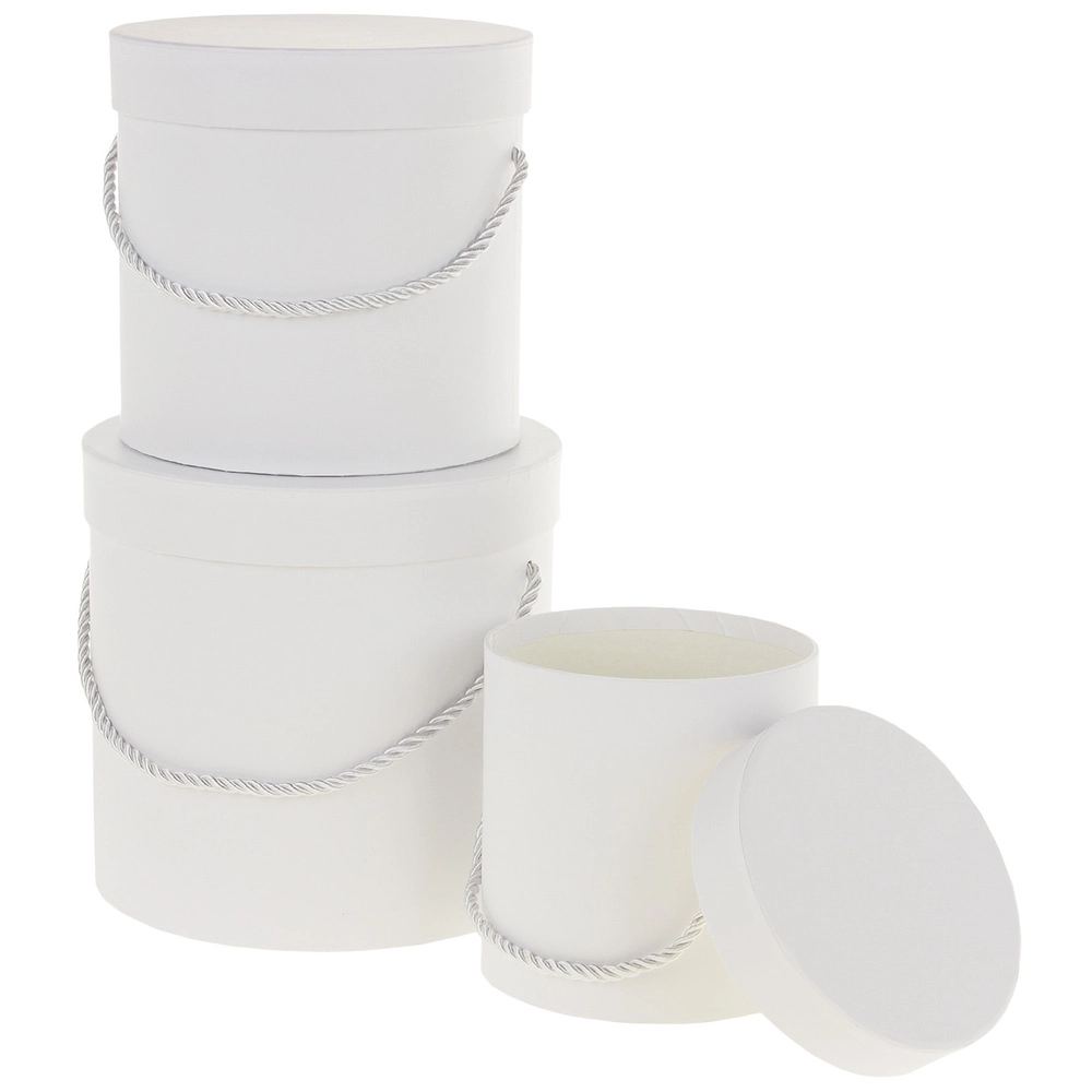Коробка шляпная, D18xH17 см - D13xH12 см, набор (3 шт), с ручкой Белый
