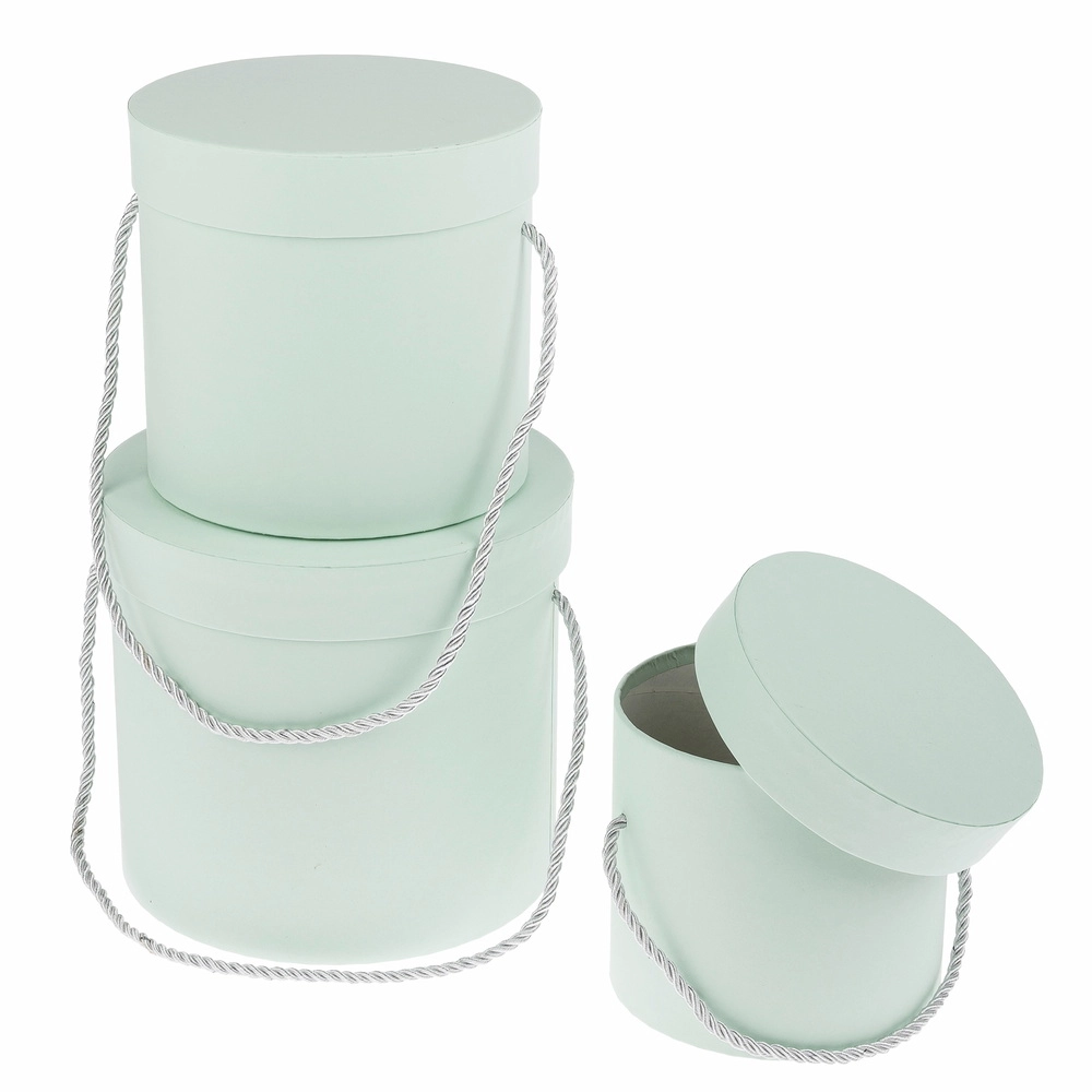 Коробка шляпная, D18xH17 см - D13xH12 см, набор (3 шт), с ручкой Мятный