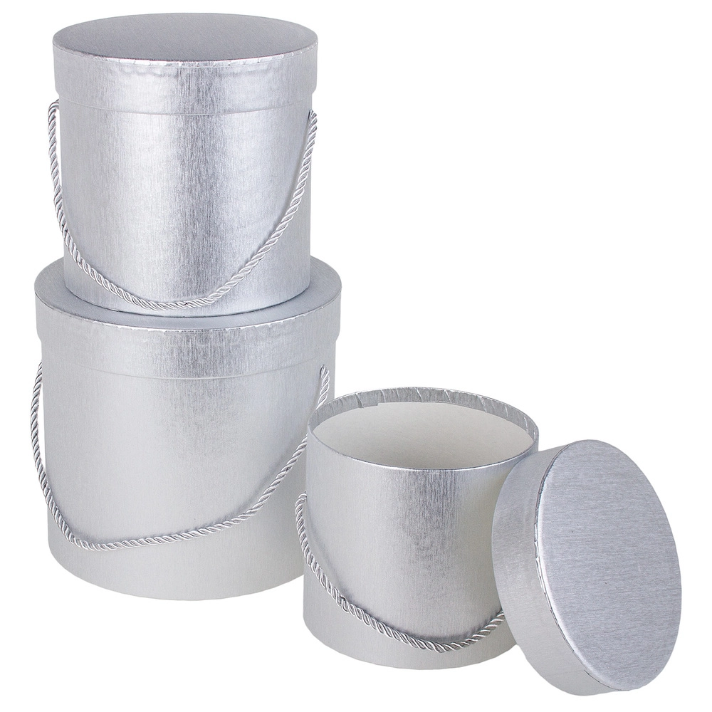 Коробка шляпная, D18xH17 см - D13xH12 см, набор (3 шт), с ручкой Серебряный
