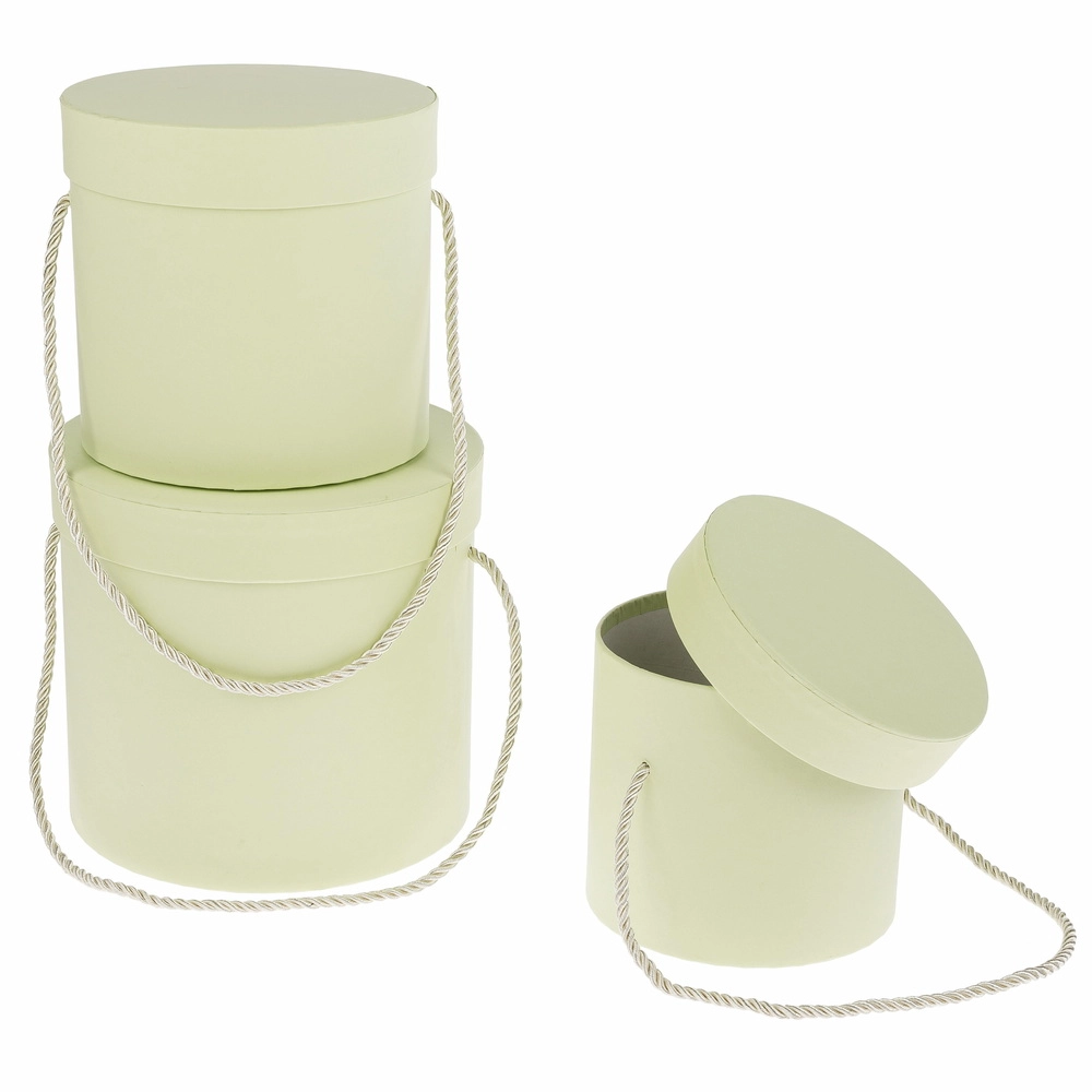 Коробка шляпная, D18xH17 см - D13xH12 см, набор (3 шт), с ручкой Светло-зеленый