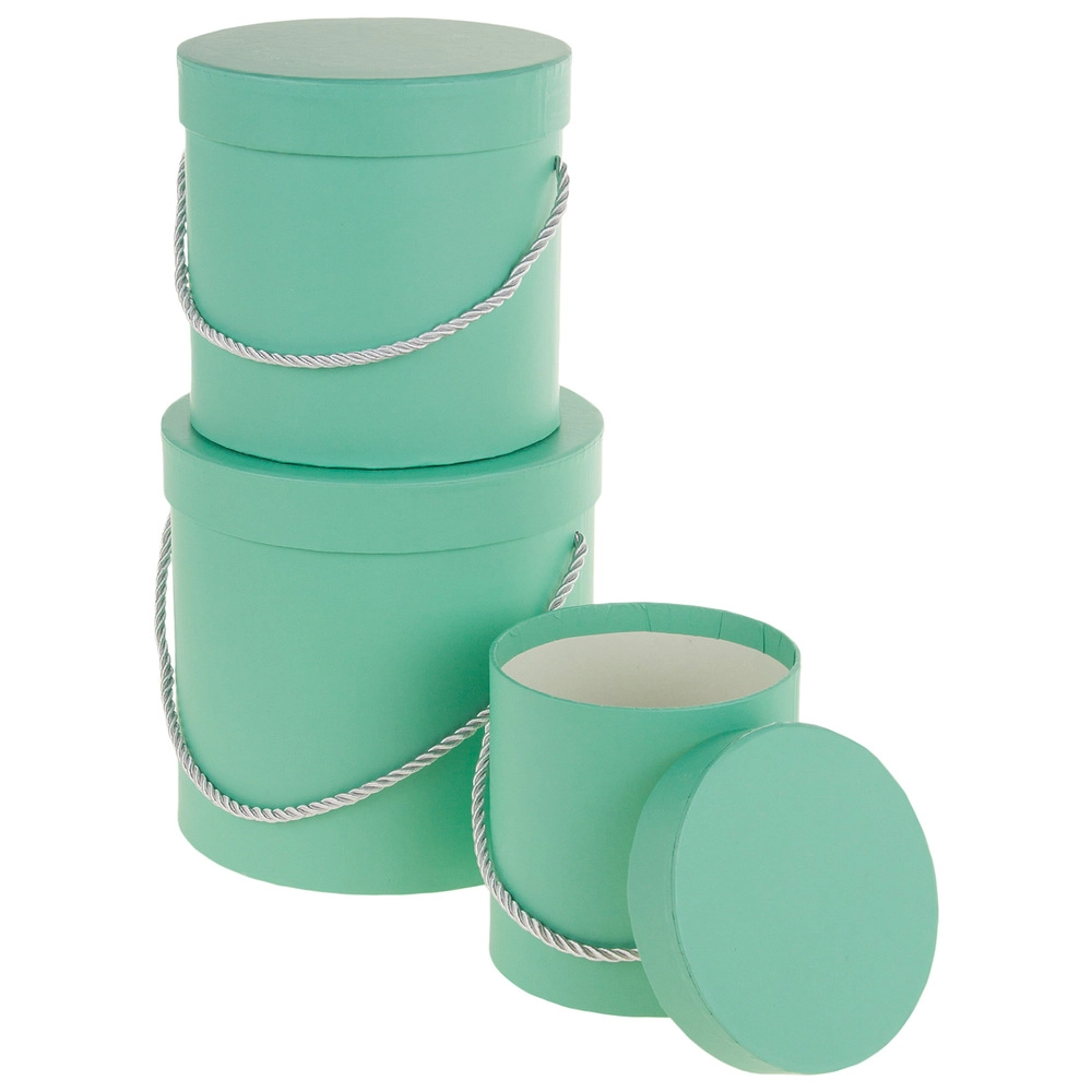 Коробка шляпная, D18xH17 см - D13xH12 см, набор (3 шт), с ручкой Зеленый