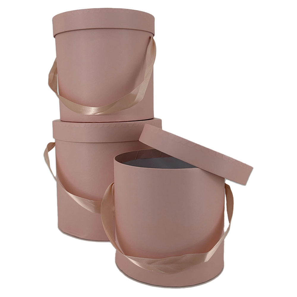 Коробка шляпная, D19,5хH19 см, D17,5хH17 см, D15,5хH15 см, набор (3 шт), с крышкой, с ручкой Светло- Светло-розовый