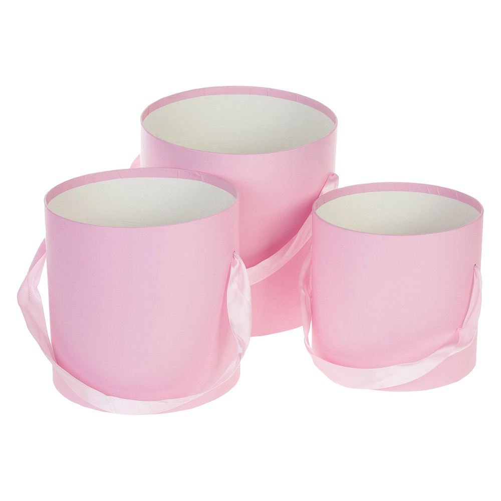 Коробка шляпная, D19,5xH19 см - D15,5xH15 см, набор (3 шт), без крышки Розовый
