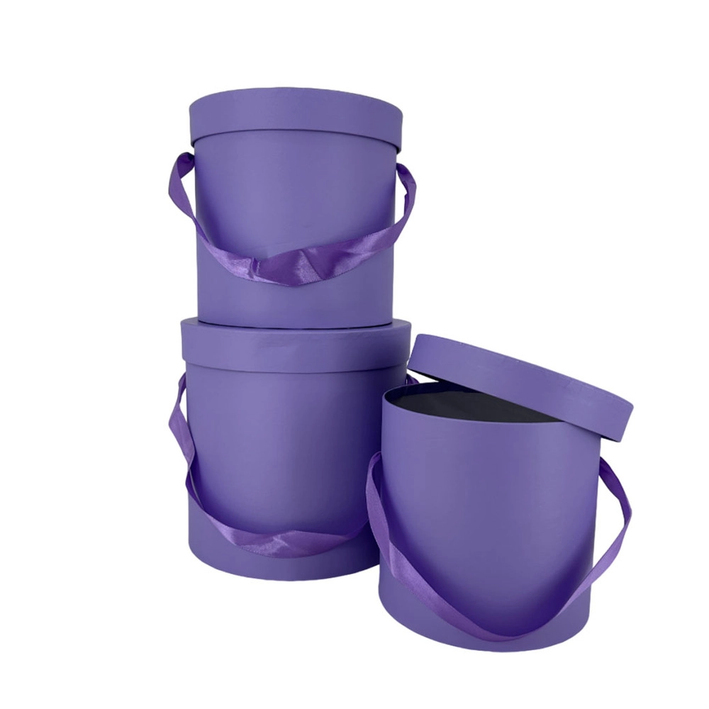 Коробка шляпная, D19,5xH19 см - D15,5xH15 см, набор (3 шт), с ручкой Фиолетовый