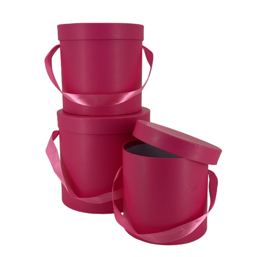 Коробка шляпная, D19,5xH19 см - D15,5xH15 см, набор (3 шт), с ручкой Фуксия
