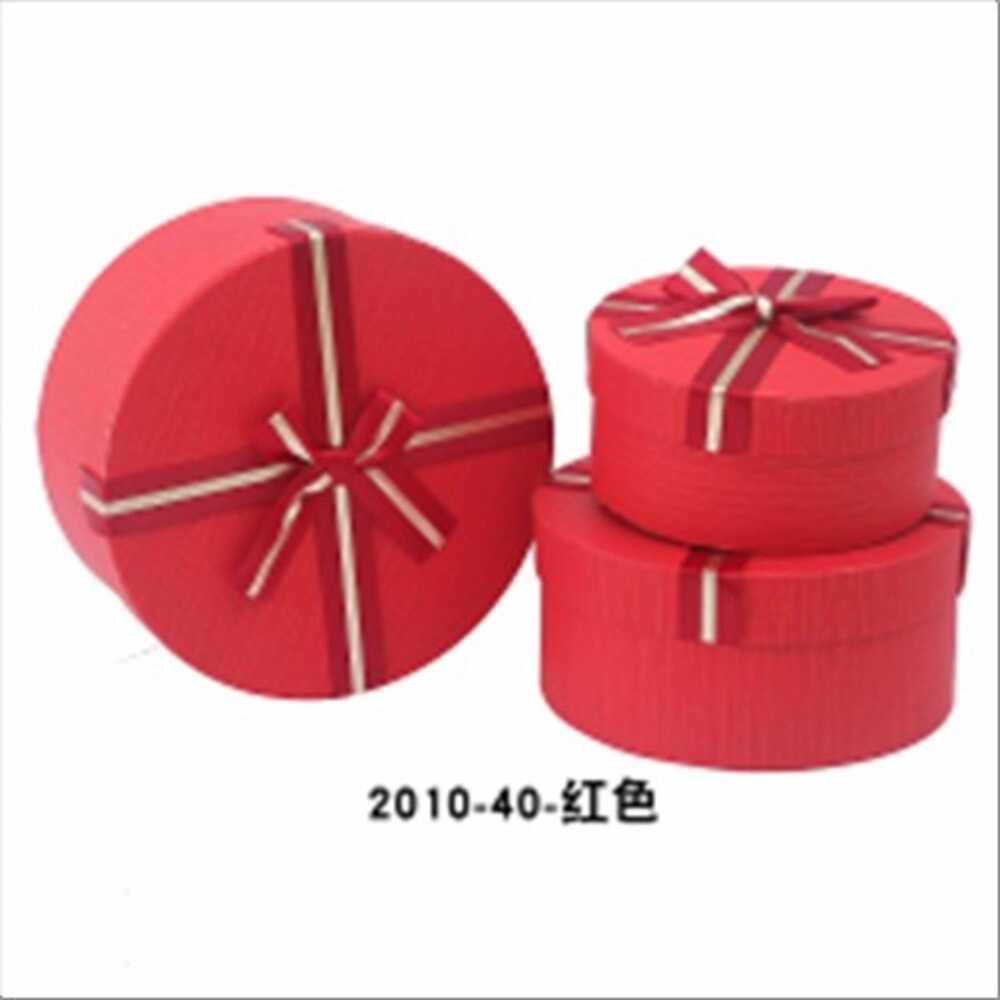 Коробка шляпная, D20xH10 см - D16xH7 см, набор (3 шт), с бантом Красный