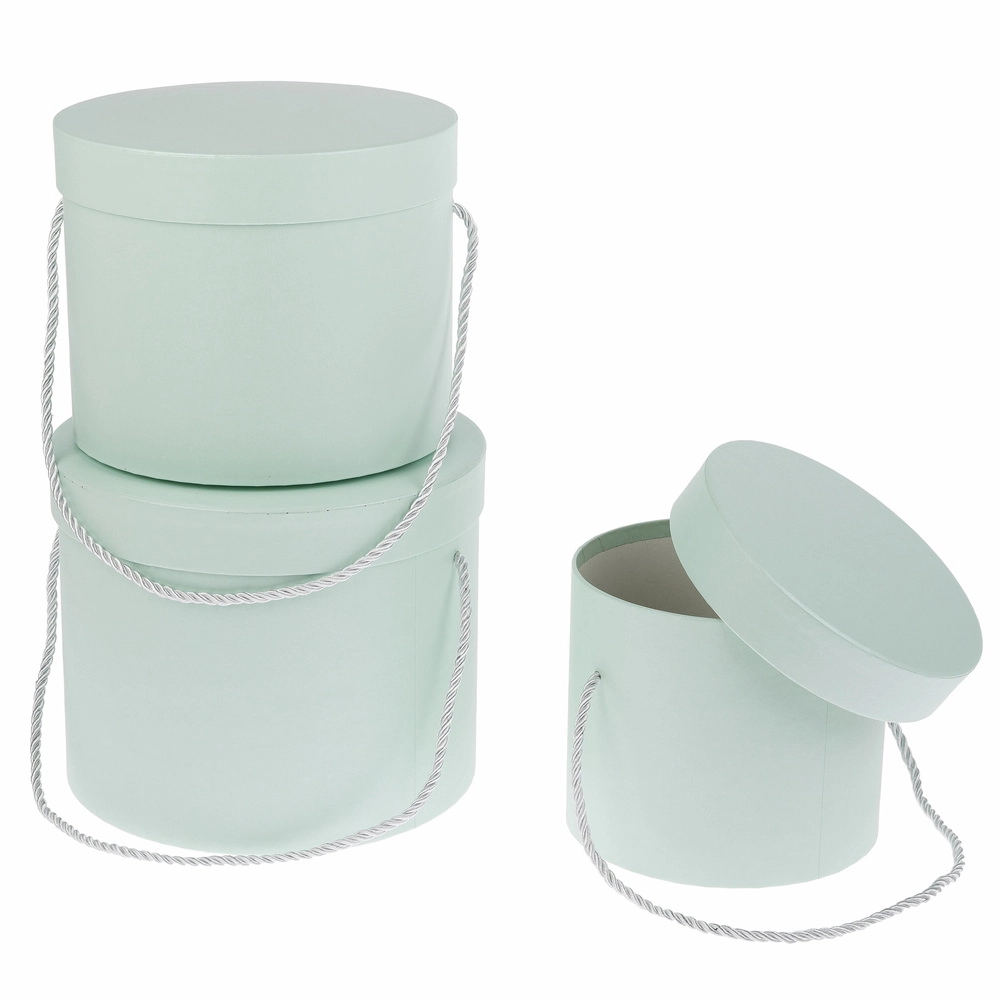 Коробка шляпная, D20xH17 см - D14xH13 см, набор (3 шт), с ручкой Мятный