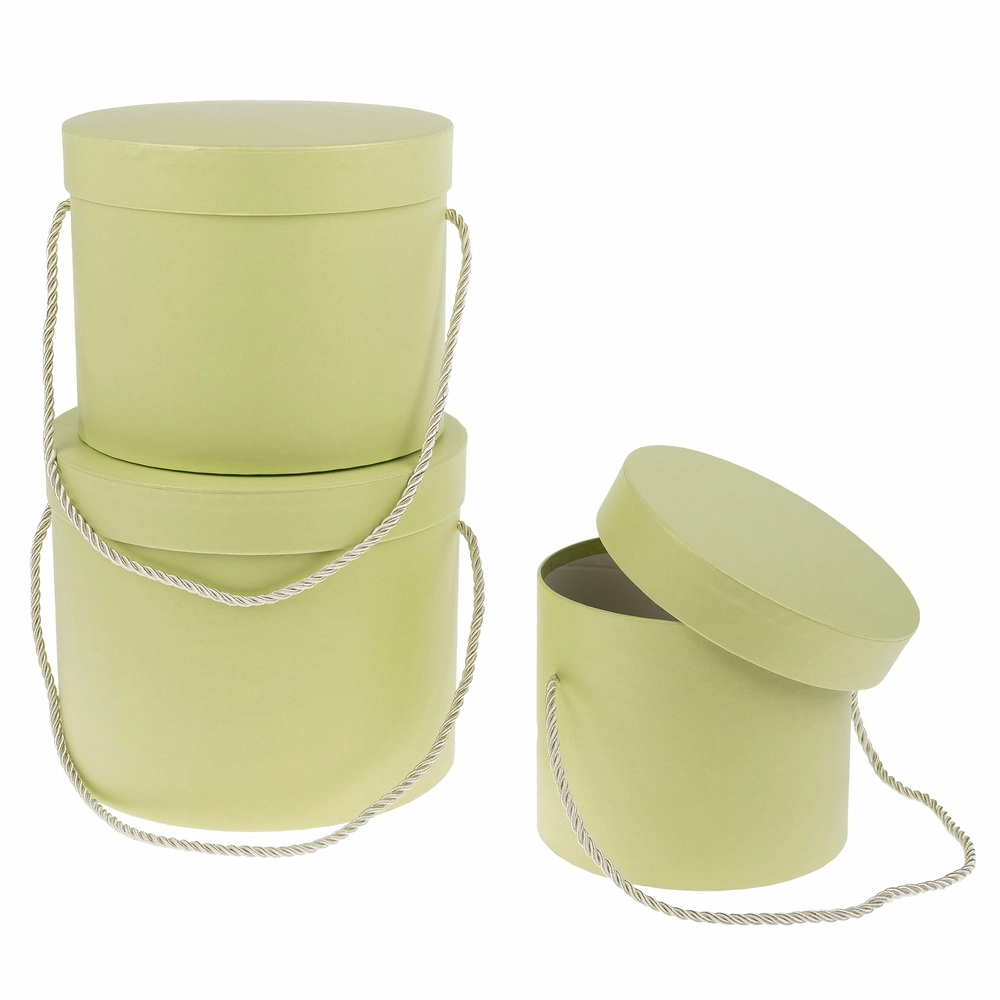 Коробка шляпная, D20xH17 см - D14xH13 см, набор (3 шт), с ручкой Салатовый
